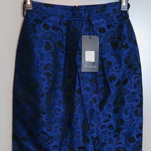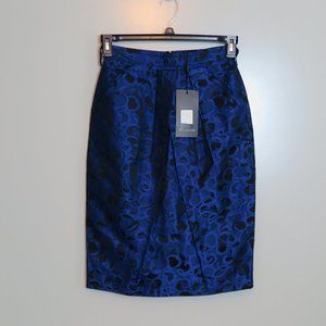NWT St. John Cobalt/Caviar Evening Satin-Sheen Skirt Size 2 MSRP $695
