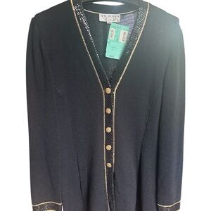 NWT St. John Evening VTG 1999 Black & Gold Embellished Trim Long Blazer Jacket
