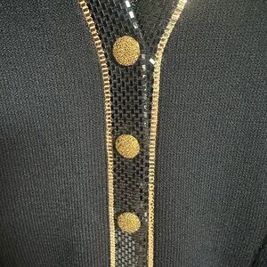 NWT St. John Evening VTG 1999 Black & Gold Embellished Trim Long Blazer Jacket