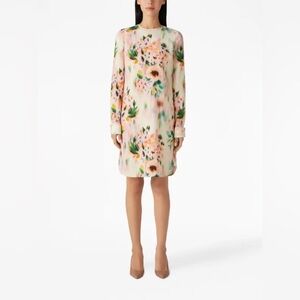NWT St. John Womens Floral Print Silk Mini Dress 4 Ecru/Peach Multi Designer