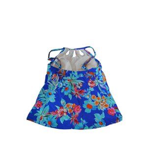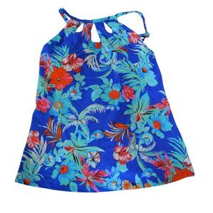 NWT St. Johns Bay Blue Floral Womens Halter Swim Top Size 8 With Keyhole Necklin