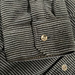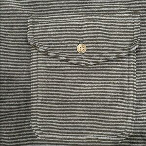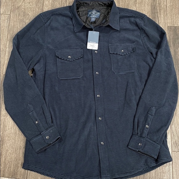 St. John”s Bay Classic fit fleece shirt jacket with navy blue stripes on soft warm fleece material. Features button-up design and 4 pockets. Ideal for versatile wear. New with tags men’s size Xl Tall