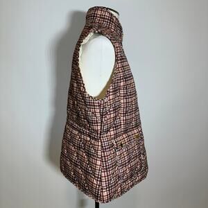 NWT St. John's Bay Neutral Check Plaid Quilted Puffer Vest Womens Size Large L