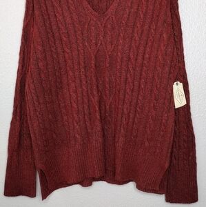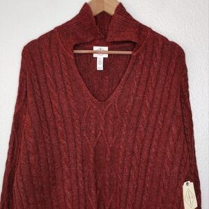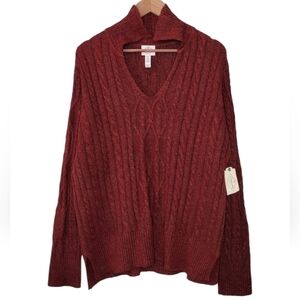 NWT St. John's Bay rustic brick cable knit pullover long sleeve v-neck sweater.