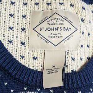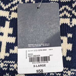 NWT St. John's Bay Sweater Men's XL Navy Blue Cotton Pullover Crew Anchors Ship