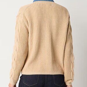 NWT St. John's Bay Women's V Neck Long Sleeve Button Cardigan, Camel Heather