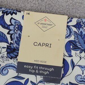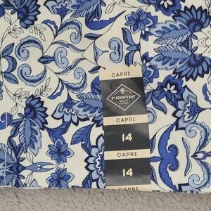 NWT St. Johns Bay Womens White Amanda Paisley Capri Pants Size 14 JCT