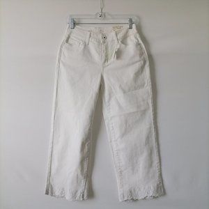 NWT St. John's Bay Womens White Mid Rise Raw Cuff Denim Cropped Jeans Size 4