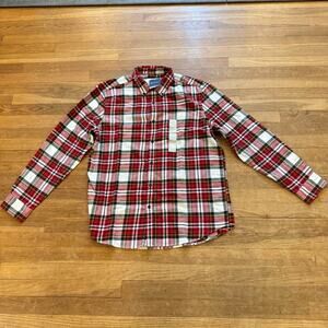 NWT St John's Bay red white plaid button up long sleeve shirt size large L b28