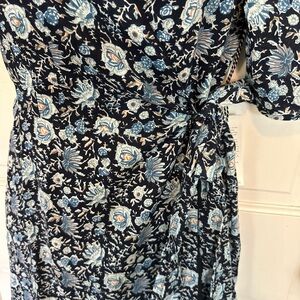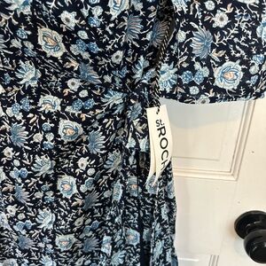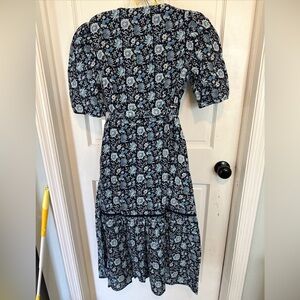 NWT St Roche Pearl Dress in Navy Wrap Around Midi Puff Sleeve Floral Size 4