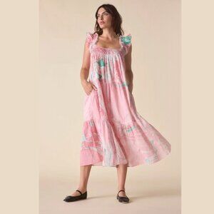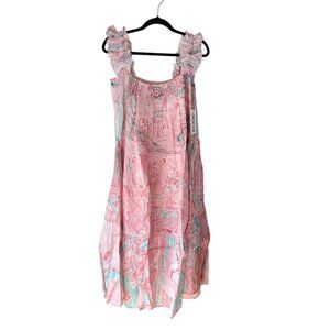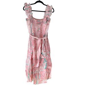NWT - St Roche Rowen Dress Pink Marbled Midi 2, 4, 6, Organic Cotton