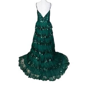 NWT Stacees A-Line Corset Tiered Ruffle Slit Ball Gown Dress 16 Sequins Prom Holiday Party