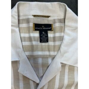 NWT Stacy Adams Linen/Viscose Short Sleeve Button Down Shirt, Tan and White 2XL