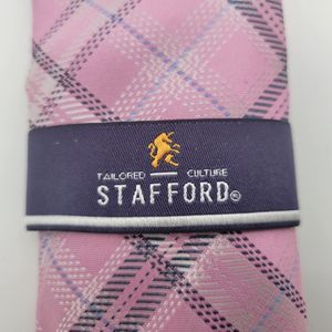 NWT Stafford Men's Pink Plaid Silk Tie OS