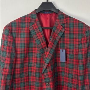 NWT Stafford Red Tartan Plaid Sports Coat Academia Festive Preppy Blazer SZ 54