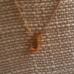 Stainless Steel J initial necklace Gold Color With crystal like stones.