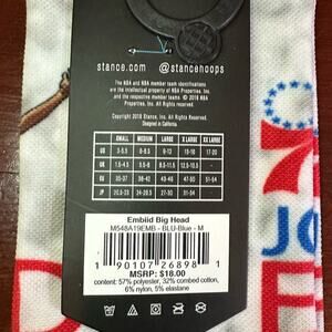 NWT Stance 76ers NBA Basketball Joel Embii Socks Blue White Mens Medium