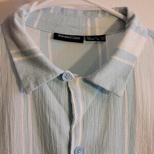 This Standard Cloth button-down shirt is a great addition to any wardrobe! The blue and white striped pattern is classic and versatile, perfect for dressing up or down.