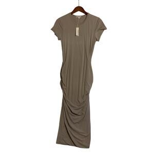 NWT Standard James Perse Dress Classic Skinny Coyote Beige Midi Rouched Minimal