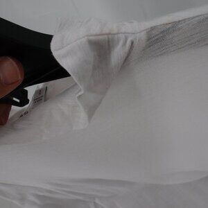 Brand new with defects. No material tag. Has a pin size hole on the back left shoulder area. Has cream/make up spots on the neck/collar from being tried, will come out