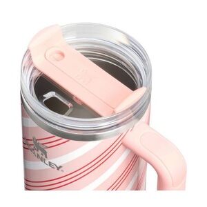 ❤️ NWT The Stanley 40 oz Stainless Steel H2.0 FlowState Quencher Tumbler in Strawberry Twist is a three-piece tumbler set that features a solid color pattern with a twist lid. It is designed to keep beverages hot for 8 hours and cold for 11 hours, making it suitable for both hot and cold drinks. Made from durable stainless steel, this tumbler is dishwasher safe and comes with a manufacturer lifetime warranty. With features like a handle, lid, straw, and insulation, this tumbler is perfect for adults looking for a high-quality and stylish drinkware option.