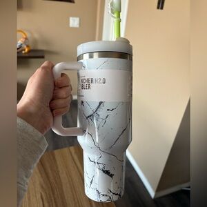 NWT Stanley Quencher H2.0 Tumbler, size 40 oz. Allover marble print. Comes with cute dog house straw topper. Functional and fashionable!