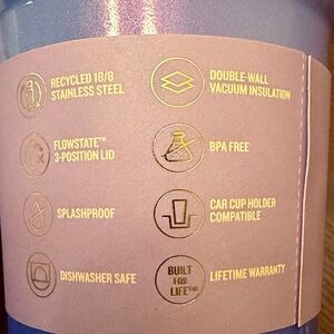 The versatile FlowState™ 3-position lid has three sip settings: one for the reusable straw, one without and the option to rotate the silicone cover shut when you’re exploring the Land of Oz.”