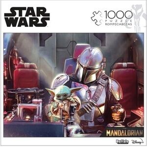 Piece Jigsaw Puzzle - "This Is Not A Toy" is a 1000-piece jigsaw puzzle featuring artwork from the Disney+ series, The Mandalorian™. The Child tinkers with the controls of the Razor Crest, the gunship used by the Mandalorian bounty hunter Din Djarin, as he looks on in disapproval.