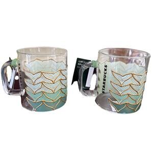 NWT Starbucks 2020 Siren Mermaid Tail 50th Anniversary Glass Mug Cup Set Of 2