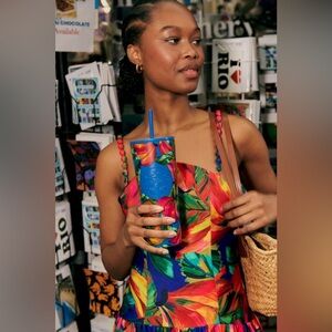 NWT Starbucks Farm Rio Limited Edition Blue Multicolor Banana Print Tumbler.