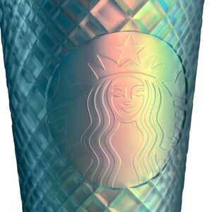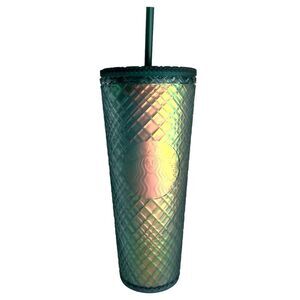 Starbucks Cold Cup Jeweled Soft Touch Tumbler. New with tags! Venti / 24 oz size. Gorgeous limited edition design! Green with iridescent pink / gold shimmer and siren logo on front. Screw-on lid in coordinating darker green with green straw. Jeweled soft touch exterior. 2023 style.