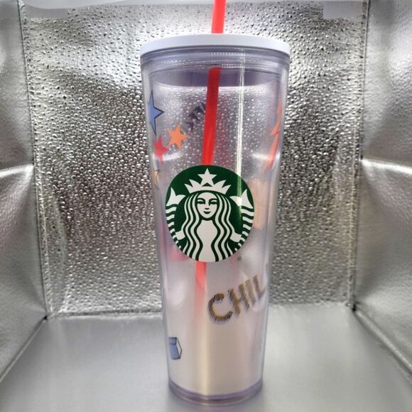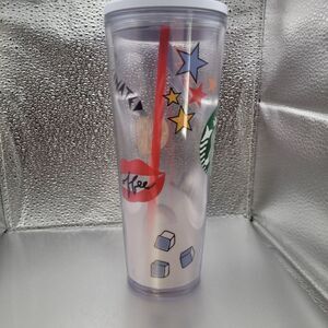 NWT! Starbucks Summer Graffiti Back To School Retro Clear Cold Cup 24oz Tumbler