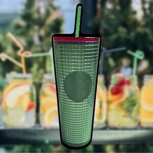 NWT Starbucks Watermelon Grid Cold Cup Tumbler Summer Pink Green - 24 oz Venti