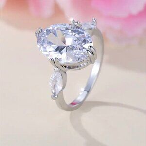 NWT Statement Ring 14K White Gold Plated Oval Cut Solitaire Cubic Zirconia Sz. 8