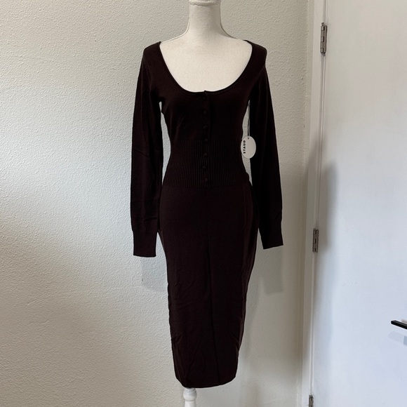 This elegant brown midi dress is perfect for any occasion. Its sleek design and comfortable fit make it a must-have in your wardrobe.