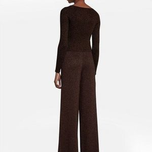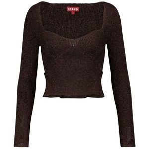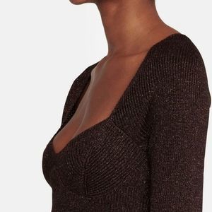 New woth tags staud brown metallic square neck long sleeve knit lurex top. bustier top and sweetheart neckline size large. open to offers.