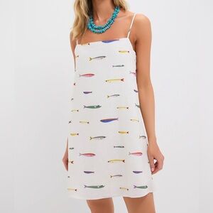 NWT Staud Laura Linen Mini Dress Pop Sardines Sz L