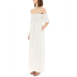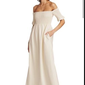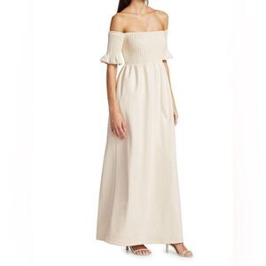 NWT Staud Mae Maxi White Dress Smocked Off the Shoulder Vegan Leather Size M