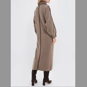Whether your grabbing a post-ski day glass of wine or meeting up with the girls for brunch, this dress is the kind of style that is perfect for any and all occasions. With a cozy turtleneck, drop shoulders, and a contrast seam, this silhouette can be styled for whatever your day brings! Pairing it with boots and a tote or heels and a belt!