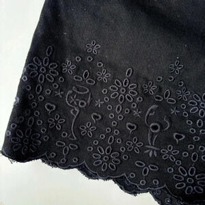 New with Tags Staud Noemie Embroidered Scallop Non-stretch Denim Shorts in Black Size 4