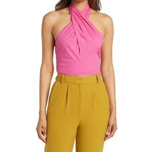 NWT Staud Size 2 Kai Crisscross Twist Crop Halter Top Pink