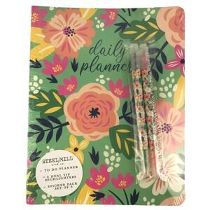 NWT Steel Mill & Co. Floral Daily Planner 2 Dual Tip Highlighters Sealed 8x7''
