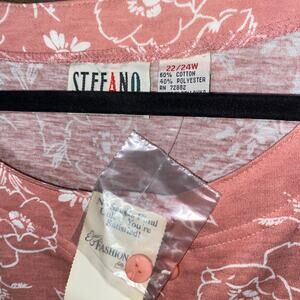 NWT Stefano Pink Floral Short Sleeve Button Down Blouse w/ Shoulder Pads Women's Size 22/24W