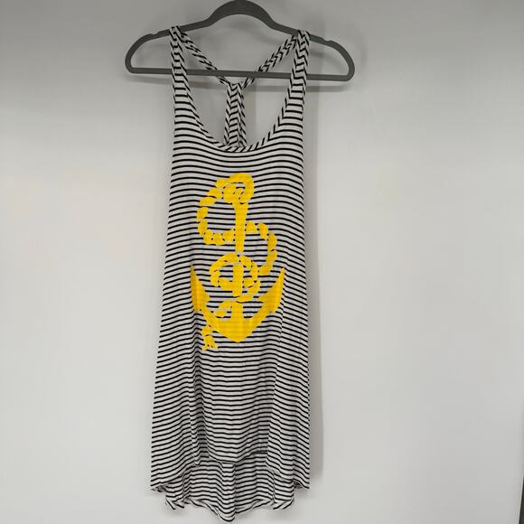 NWT Stella Cruz Striped Racerback Anchor Rope Tank Top Women's Sze M Black White