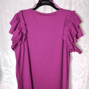 NWT Stella & Ginger purple ribbed knit flutter sleeve blouse.