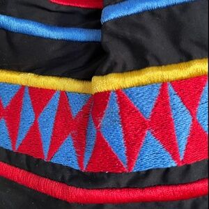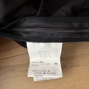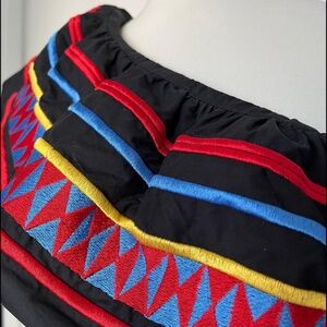 This is a beautiful new top from Stella Jean. It's a one-shoulder top with a ruffled peplum and colorful embroidered ribbon trim. It says it's a size 42 but there is a belt so it's a bit adjustable and a zipper on the side. It's an Italian size so the fit is a bit tighter. it fits me and I'm a size medium. It's equivalent to a size 6.
