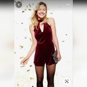 NWT Stella Luce Burgundy Velvet Romper with Cutout and Lace Detail