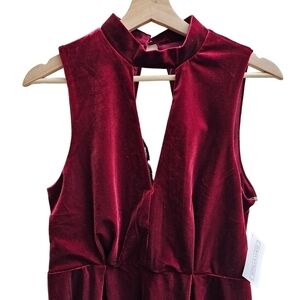 NWT Stella Luce Burgundy Velvet Romper with Cutout and Lace Detail, Size Small