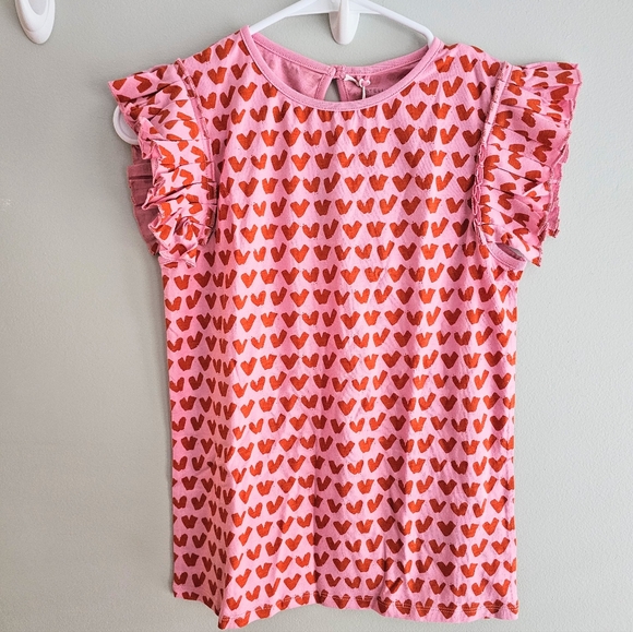 New with tags Stella McCartney Kids hearts jersey tee with short ruffle sleeves.