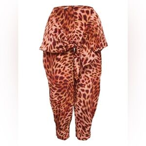 NWT Stella McCartney Tie Waist Wrap Silk Trouser Pants Martini Pink Cheetah 40